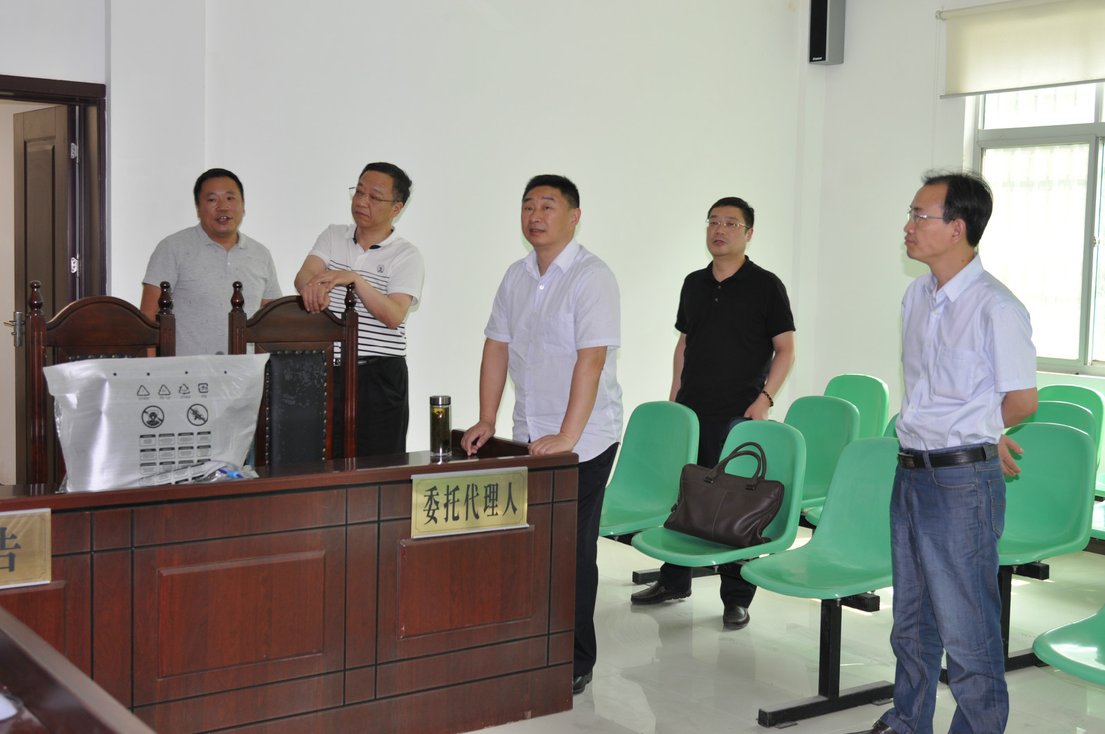 杨建强副院长一行首先前往该法院黄堡法庭,参观了立案室、科技法庭、人民调解室,与干警们亲切交谈,当得知其科技法庭硬件已经建成,后台还未建好时,便对该法院院长何仁兵说:“按照省高院、市中院《信息化应用大比武活动方案》规定八月份将进行比赛,时间紧、任务重,要尽快把后台服务器建设好,让黄堡法庭的法官先行掌握、应用好科技法庭,然后在全院法官学习、推广。